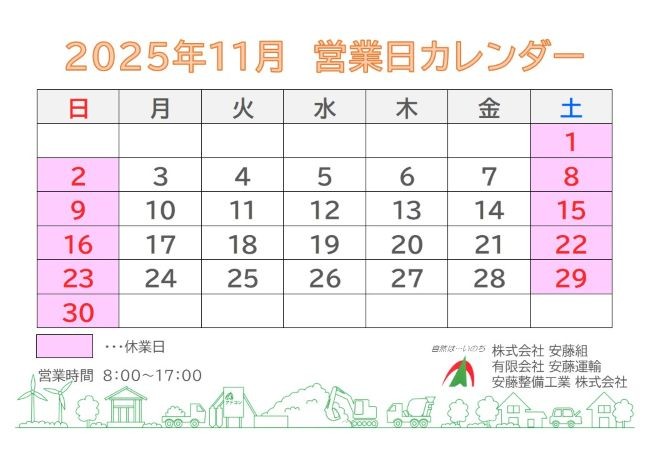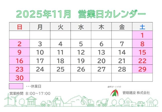 11月15日(土)休業日 ➡ 11月15日(土)営業日