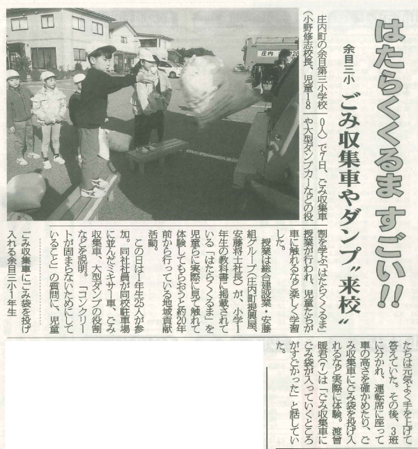 荘内日報に「はたらくくるま」体験会の様子が掲載されました