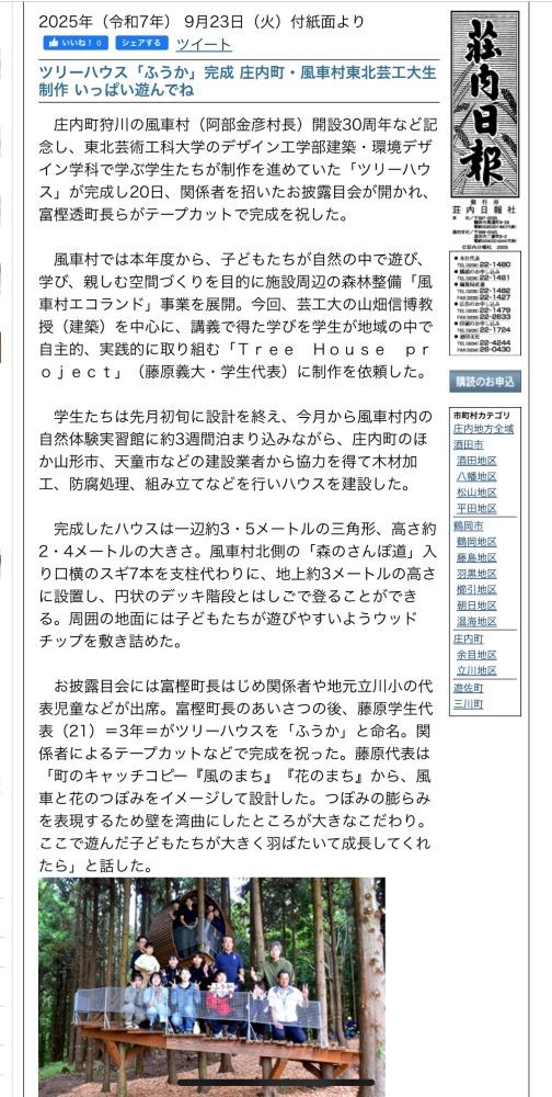 庄内町風車村ツリーハウスお披露目会が実施されました